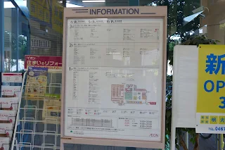 正面出入口を入った右横には、元々は“MYCAL”プレートだったと思われるイオンスタイル湘南茅ヶ崎のプレートと大規模小売店舗プレートが設置されています。