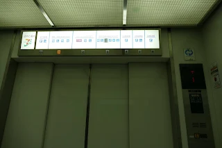2階に続く階段とエスカレーターがあるものの、エスカレーターは使用停止となっています。